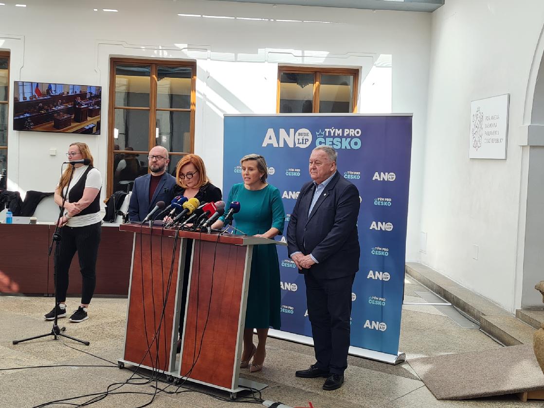 Zatímco v sále hovořila opozice, v tiskovém středisku se konala tisková konference, na které předsedkyně senátorského klubu ANO Jana Mračková Vildumetzová mluvila o tom, jak vypadá ta „nechaos“ politika v Senátu, kde má většinu opozice.