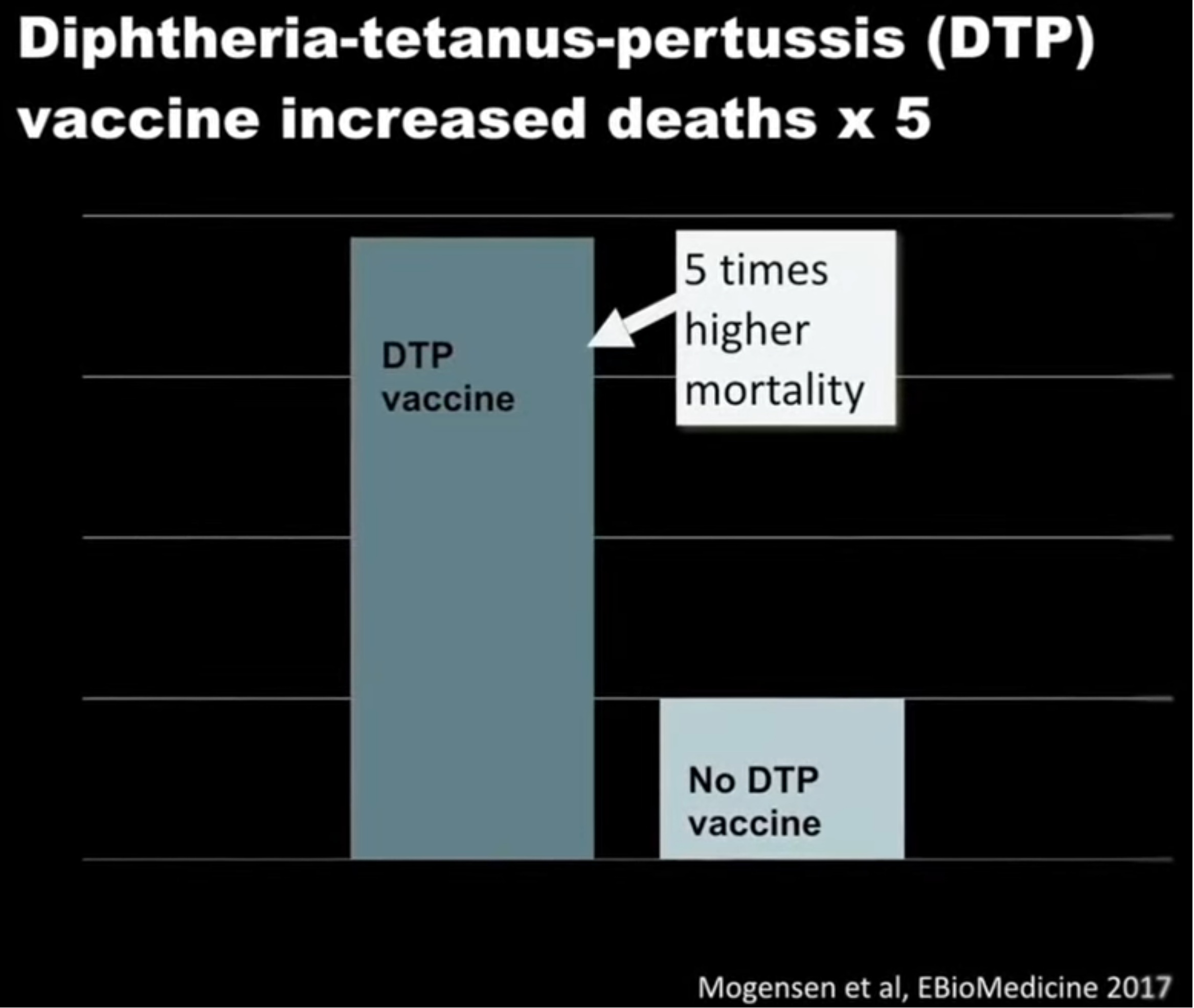 Kennedy zároveň uvádí, že tato kombinovaná vakcína nebyla licencována FDA, v rozvinutých zemích se běžně nepoužívá a meta analýza Cochrane měla ukázat, že je méně účinná než podávání jednotlivých vakcín zvlášť. Navíc se v několika zemích, kde byla vakcína testována nebo zaváděna (Bhútán, Srí Lanka, Pákistán, Vietnam), objevily případy nevysvětlitelných úmrtí dětí krátce po očkování, což vedlo k přerušení programů nebo jejich stažení.