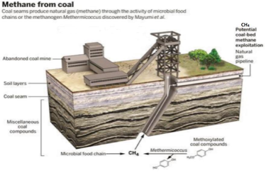2. Mikrobiální přeměna černého uhlí na metan (zemní plyn)
