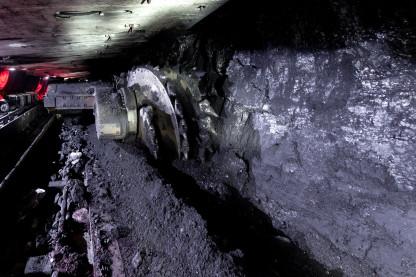 Dobývací kombajn v černouhelné sloji na dole ČSM