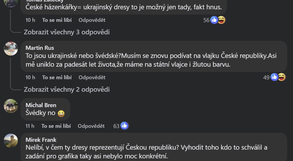 V komentářích se strhla mela. „České házenkářky= ukrajinský dresy to je možný jen tady, fakt hnus,“ reagoval jeden z přispěvatelů.